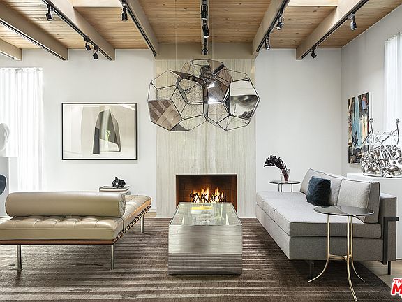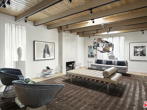 Marvin Beck A.I.A. Post & beam living in the canyon: 1966 mid-century with cook's kitchen & walk-in pantry among the pines in upper Benedict Canyon. Elevated above the thoroughfare, the design orients to an expansive back patio through walls of glass, making for a modernist tree-house a modest distance from Rodeo Drive. A private elevator links the ground-floor home office (with its own bath) and the residence one level up. Additional home "studio" basement space on the ground floor adds multiple live-work options, as well as exceptional storage capacity. Richly textured interiors illustrate alternatives to the "white-box" modern concept. High tech "Smart" lock system for entry and exit. Two-car carport,with yet more storage in locked cabinetry, through which one enters the office/studio level.