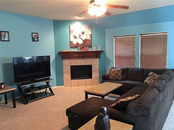 Large, (almost 2000 square feet) one story floorplan within walking distance to community pool, playground, and middle school. Home features 3 nice sized bedrooms with master suite split from other bedrooms. Large room at front makes a great office or 2nd living area with french doors. Tile in entry, kitchen, and both baths. Updated carpet in living area, dining room and hallway. Large formal dining with art niche. Kitchen has tile backsplash and corner pantry. Living area has fireplace and opens to nice backyard with covered patio. Ceiling fans, alarm system, sprinkler system and an updated hot water heater & garage door opener.
