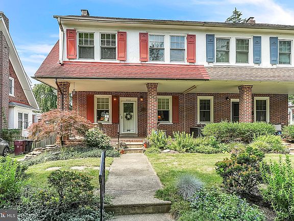 Welcome to 2022 Delaware Avenue — a beautifully maintained 2,344 sq ft twin home in the heart of Wilmington’s coveted Highlands neighborhood. Just minutes from Trolley Square, the Delaware Art Museum, Kentmere Parkway, and major highways, this location offers the perfect blend of charm, convenience, and culture. From the moment you arrive, pride of ownership is evident in every detail, inside and out. The inviting front porch overlooks a colorful, well-cared-for landscaped garden—ideal for morning coffee or relaxing evenings outdoors. Step inside to a sun-drenched, flowing first floor featuring a spacious formal living room with a cozy fireplace and dining room, both accented with original character and abundant natural light. The fully remodeled galley kitchen off the dining room is a chef’s dream, with modern finishes and updated appliances. The living room/dining areas lead seamlessly into a stunning four-season sunroom/den. This custom addition offers neutral tile flooring, minimalist built-in cabinetry, skylights, and walk-out access to a private rear patio. There, enjoy the serene beauty of meticulously maintained gardens and an installed man-made pond—your own backyard retreat. A charming detached garage with exposed brick offers additional storage or creative outdoor use. The second floor boasts an abundance of natural light and showcases the timeless charm of this home, with stunning original doors, vintage glass knobs, and beautifully crafted built-in cabinets beneath the windows, each detail is a nod to the home’s unique character and craftsmanship.The large primary suite includes an en-suite full bath with skylights, while two additional generously sized bedrooms share a unique center-hall bath . A spacious light filled third-floor room provides extra space—perfect for guests, an additional bedroom, a home office, or a creative studio.