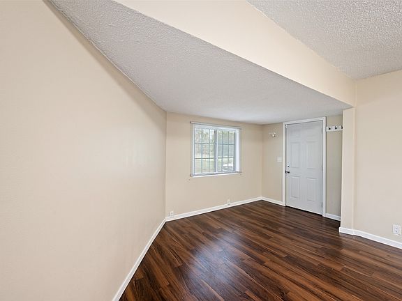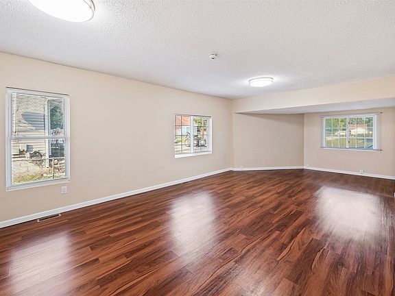 Renovated bungalow with quiet front facing school. The home features neutral tones with crisp white trim. A long, paved driveway provides easy access to a detached two-car garage in the back. The spacious yard offers plenty of green space, perfect for outdoor activities or future landscaping. Set on a quiet residential street, this home has inviting curb appeal and a clean, move-in-ready exterior. Inside the bright and spacious living area features rich flooring and neutral walls that create a warm, inviting atmosphere. Large windows allow plenty of natural light to fill the room, while modern light fixtures add a clean, updated touch. The open layout flows seamlessly toward the kitchen and staircase, offering flexibility for various furniture arrangements. Perfect for both relaxing and entertaining.