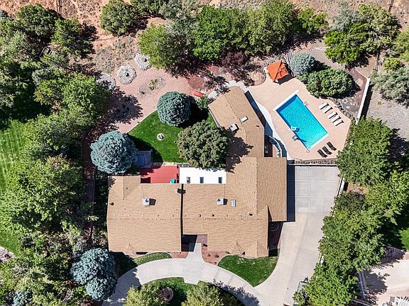 Welcome to 2022 Eagle Court, an immaculate executive ranch-style home at the base of the Colorado National Monument and just steps from Tiara Rado Golf Course. Set on a full acre with stunning Monument views, this residence blends timeless elegance with thoughtful modern updates. The sprawling 4,700+ sqft floor plan is all on one level, offering a seamless flow between living spaces with exceptional attention to detail. The chef’s kitchen, remodeled in 2022, features custom cabinetry with a spice drawer, mixer lift, cookie sheet cabinet, a Sub Zero refrigerator, a Blue Star range, and two appliance garages. The living and dining spaces sit at the heart of the home and connect to a bright sunroom, creating an easy flow for gatherings. The primary suite is a private retreat with a remodeled spa-like bathroom, private office, and a walk-in closet the size of a bedroom with a cedar-lined locking space. It also offers direct access to the backyard oasis. A separate wing functions as a mother-in-law suite with its own entrance, family room, wet bar, full bath, and bedroom—ideal for guests, multi-generational living, or private entertaining. Additional highlights include a remodeled gym, generous secondary bedrooms, and updated guest baths. The sellers have completed extensive renovations including the kitchen, dining and living areas, primary bath, office, gym, and new Andersen windows. These major updates, paired with thoughtful system improvements, represent a significant investment that elevates the home well beyond its original build. Step outside to your own resort-style yard with pool, spa, and expansive patio, all integrated with automation that controls lighting, sprinklers, climate zones, and security. An oversized three-car garage with workshop and large storage room completes the package. 2022 Eagle Court is more than a home. It is a lifestyle of comfort, privacy, and sophistication in one of Grand Junction’s most coveted locations.
