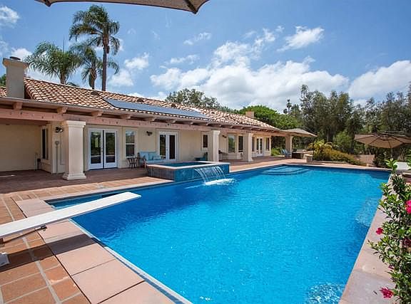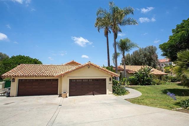 BOM 7-18-22. View home in sought after Elevado Hills area of Vista. Single story with an amazing open floor plan. Master suite includes an extra space currently used as a library but could easily be converted to another bedroom with its own entry door. 3 skylights and tons of windows for natural sunlight throughout the home. Gorgeous oversized 9' deep pool that even has a diving board. Spa that fits at least 10 people. Views for miles and miles. Enjoy dinner, coffee, get-togethers and more on the expansive patio with wood burning fireplace. Over an acre of privacy that is fully fenced and gated. Oversized 4 car garage with storage cabinets, work bench, epoxy floors, window AC and pull down attic access. Gated RV, boat, or toys parking. 2 solar set ups are paid for. One for home and one for pool. Large secure grassy front yard with resort feel. Quiet, peaceful neighborhood. Large shed, storage tent, play set, and chicken enclosure included. Come watch the sunset from every window facing the back and enjoy some fruit from over 10 varieties of fruit trees. Beautiful custom cabinets in living room are included in sale. They fit perfectly and provide tons of storage.