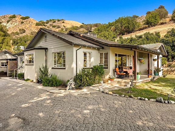 View home on 7.5 Acres! This 3 bedroom, 2 bath home with approximately 1,772 SF of living space was built in 1948. This home offers original wood floors, built-ins, a fireplace and great views over the Sespe Creek and into the valley. Stay warm in winter next to the fire while enjoying sunset views. The tire swing says it all, country living at its finest. Improvements include a small studio/sleeping room with a bathroom and a converted garage that opens up into a large living area. A new Garage was built along with a 1,460 SF agricultural cover in 1956. Horse corrals extend from the cover and a trail leads up to the roughly 1-acre pasture. The ranch is planted to an estimated 5 acres of mature Hass and Lamb Hass avocados. Agricultural and domestic water is provided by Goodenough Mutual Water with five shares owned. This ranch is a great size and avocado trees flourish in this area. This is a great opportunity to own acreage with a view and benefit from farming avocados.