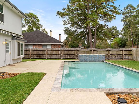 Stunning 3 bedroom, 2.5 bathroom, 2-story home featuring a 2-car attached garage, new roof, whole home generator, and a sparkling pool! Interior features include beautiful wood-type flooring throughout, updated neutral paint, and high ceilings while the 1st floor offers a formal area, a fireplace den, and an upgraded eat-in kitchen that boasts granite countertops, ceramic tile floors, a subway tile backsplash, a breakfast bar, and recessed lighting. Upstairs, you'll find the modest game room, utility room, and the bedrooms including the primary bedroom suite featuring dual sinks, a garden tub, separate shower, and walk-in closet. There's an open patio in the backyard along with plenty of green space, the rectangle pool, and no back neighbor. This home is located with easy access to I-45, the Grand Parkway, The Woodlands, and more! Showings from 6am-8pm: Download Zillow app to access. Search home in app. Click Self Tour to unlock. Photos are virtually staged. Size of furniture and decorations are for reference only.