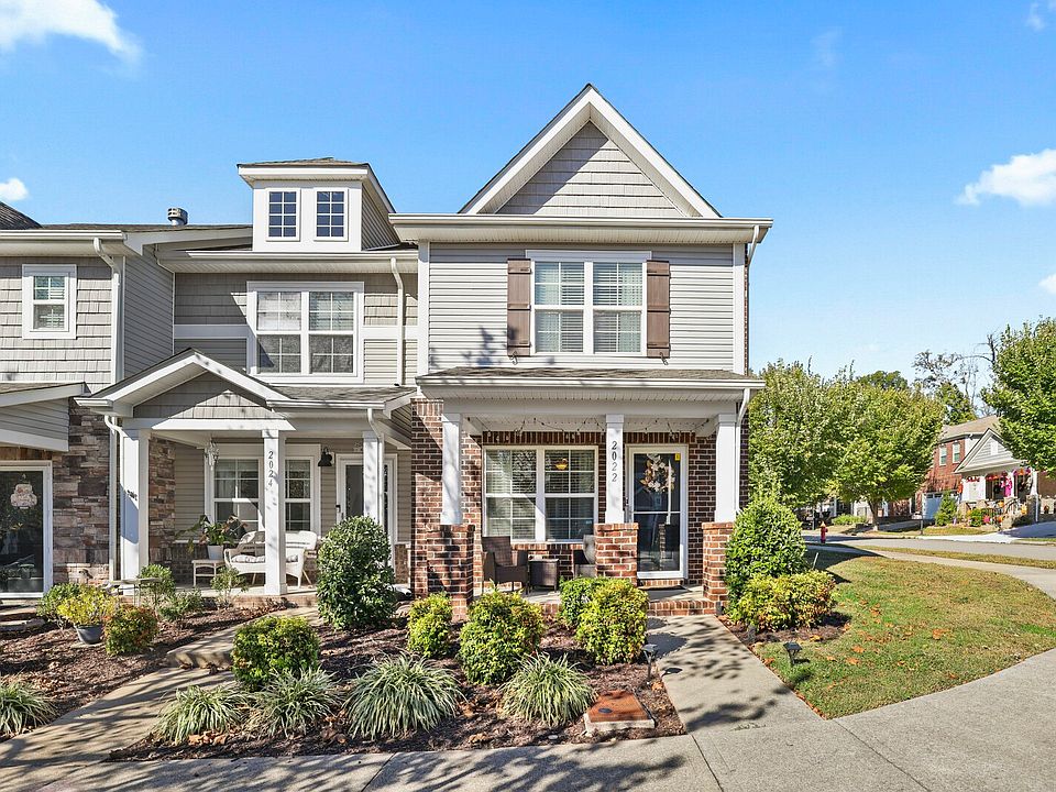 Charming and modern 2-bedroom townhome perfectly situated on a corner lot! This stylish end unit offers low-maintenance living—landscaping is taken care of except for the small private courtyard out back. The open floor plan is bright and inviting, featuring a contemporary kitchen with a large island and stainless steel appliances. Both bedrooms are upstairs, each with its own ensuite bath for comfort and privacy. Enjoy a covered front porch, fenced patio area, and a private 1-car garage—an ideal combination of convenience, modern design, and easy living! * Currently used as a rental property. Tenants in place until January*