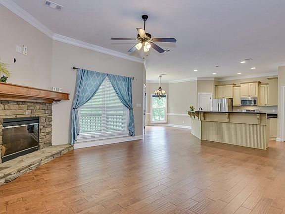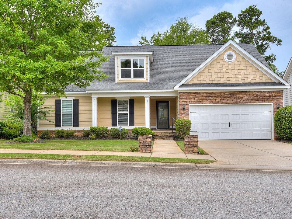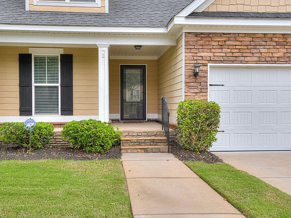 On the Pond in Tudor Branch! One Owner Home! Beautiful Single Story home with Open Floor Plan and Very Private Backyard! You will love the Porches on this home - front porch Rocking Chair, back Porch is Covered and give you a secluded lot which overlooks Pond and Woods! Inside you will find beautiful Wood Floors in the Large Greatroom with vaulted ceiling and Fireplace. The Kitchen features Granite Countertops, Stainless Steel Appliances, Refrigerator, Breakfast Bar and Pantry ! The Dining Area has a Bay Window with lots of Natural Lighting overlooking the serene backyard ! The Primary Bedroom has a trey ceiling with 2 Closets - one Walk-in Closet and 2nd Large Closet. Primary Bath has double sinks, with separate shower and tub. Two Additional Bedrooms. Double Garage with rooms for tools! Wonderful lot with sprinkler system! Community Sidewalks, Pool and Clubhouse. Conveniently located to I-20, Fort Eisenhower and all shopping!