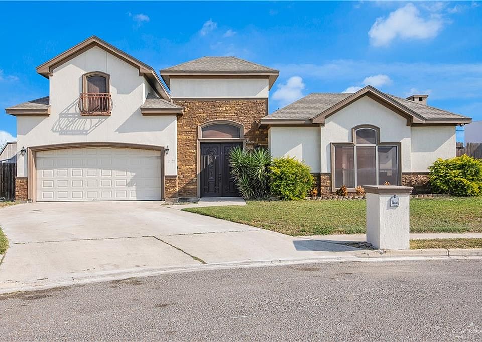 Now available in McAllen, TX, this home offers 2,200+ sq ft of living space on an impressive quarter-acre cul-de-sac lot! With 4 bedrooms, 2 full baths, and 2 half baths, this residence stands out the moment you arrive. The grand entrance opens directly into a private outdoor pool area, creating a dramatic and unforgettable welcome for your guests. Enjoy a spacious covered patio, perfect for entertaining, grilling, and weekend gatherings. Inside, the home features an elegant main living and dining area, plus a stylish second living room with a built-in mini bar, perfect for hosting. Downstairs includes 3 bedrooms, including the master suite, while the upstairs fourth bedroom offers flexibility for an office, guest room, or maid’s quarters. The unique kitchen design is complemented by an oversized pantry/utility combo with windows, offering great light and extra storage. Located in McAllen/Sharyland Area and zoned to Sharyland ISD, this home offers comfort, character and convenience.