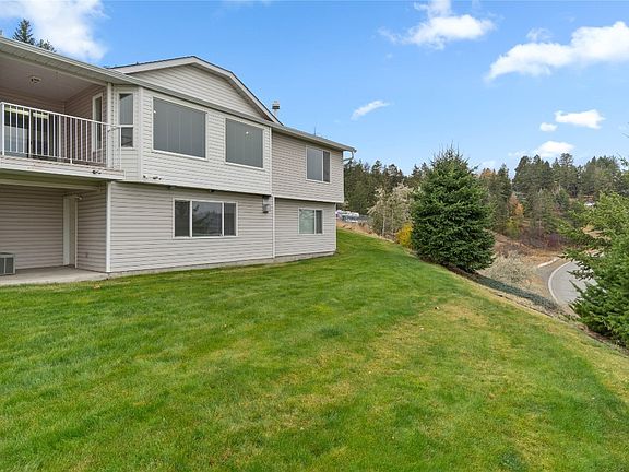 Location! Location! Enjoy breathtaking panoramic views up and down the valley from this end unit in Ravenwood with extra guest parking. This immaculate level-entry rancher with a full daylight basement is vacant & ready to move in. Main welcomes with a bright open-concept layout, and a cozy natural gas fireplace in the living room. The adjoining dining area flows effortlessly to the kitchen with breakfast nook—featuring all appliances and access to a covered BBQ deck, ideal for year-round enjoyment. The spacious primary bedroom includes a large walk-in closet and a 3-piece ensuite with shower for your privacy and comfort. A second bedroom with bay window makes a perfect guest room or home office, and the full 3-piece bath with jetted tub is conveniently located nearby. Main floor laundry is tucked away in a handy hall closet, with easy access from the foyer to the double garage. Central A/C, central vacuum, and a 2021 hot water tank add to the worry-free lifestyle. Downstairs offers even more room to enjoy with a third bedroom, 4-piece guest bath, and a large rec room with a stunning view & cozy gas fireplace opens to a second small covered patio with level access to a grassy yard area. A dedicated workshop includes lots of added shelves for tools and storage. Spotlessly clean and move-in ready—this home offers comfort, security, and style in one perfect package and probate is complete.