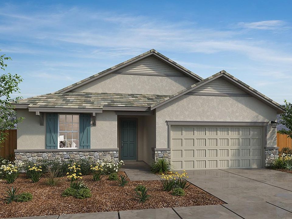 This charming new French country-style single-story home is under construction and located in the new home community, Enclave at Crossroads West, a master-planned community offering parks, trails, and bike paths for year-round outdoor recreation. Just minutes from the Riverbank Sports Complex, plus nearby shopping, dining, and entertainment, with convenient access to Hwy. 99 for trips to the Central Valley, Bay Area, or Yosemite National Park. This thoughtfully designed home will feature 9-ft. ceilings, a den, a spacious great room, and a modern kitchen with linen white cabinets, Quartz countertops, an island that opens to the living area, perfect for everyday living and entertaining. A dedicated laundry room adds everyday convenience. Enjoy a split-bedroom layout for added privacy and an expansive primary suite. Energy-efficient touches include Low-E windows, WaterSense® fixtures, an electric water heater, smart thermostat, and a Whirlpool® appliance package. Make this beautiful new home yours and enjoy all that Enclave at Crossroads West has to offer.