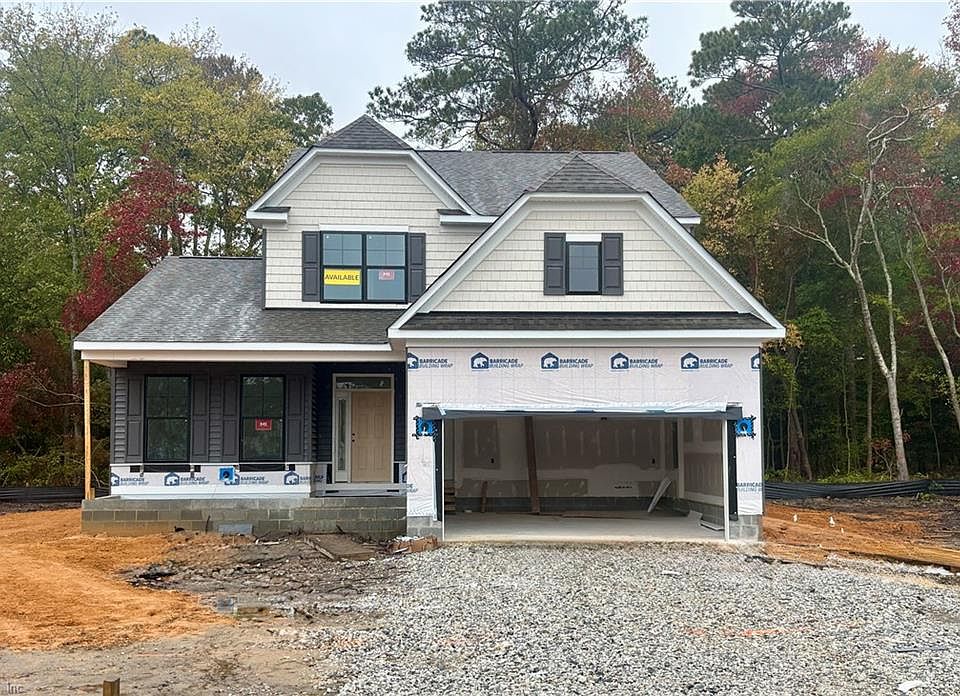 The Raleigh feature 4 bedrooms, 3.5 baths, and a front-garage. As you enter, you'll be greeted by the home office directly off of the foyer. Kitchen with granite countertops, island pantry, LED recessed lighting, and stainless steel appliances. The spacious two-story family room is open to the kitchen and features a gas fireplace. Separate breakfast area. FIRST FLOOR PRIMARY SUITE with tiled, LUXURY shower, dual vanity, and walk-in closet. A powder room for the guests and a deck complete for the first floor. Upstairs features three additional rooms, a full hall bath with a double vanity, and an extended loft area. Options to personal this home include an additional bedroom on the third floor. Welcome to Swiss Legacy! Located in Hayes, Virginia, and neighboring Gloucester Point, this community is nestled along the shores of the York River. Explore charming local shops, fresh seafood at riverside restaurants, and take in the stunning natural beauty with activities.