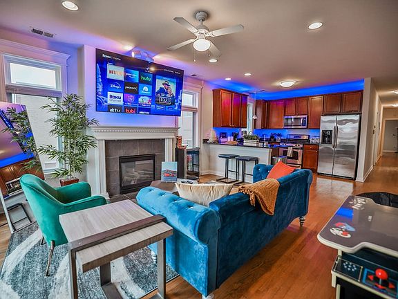 Welcome to this vacation home nestled in the heart of the city, offering the perfect blend of sophistication and comfort. Styled specifically for long-term stays, you'll love the open floor plan, sleek design, and cozy living room with plush couches, a fireplace, and a flat-screen TV. The gourmet kitchen is fully stocked with top-of-the-line appliances and plenty of counter space for your culinary creations.