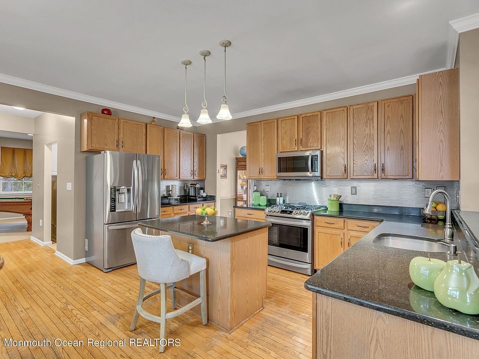 GRANDE WOODLANDS WEST: Fabulous 4 bedroom Glendenning-built home with finished basement on a sprawling fenced .60 acre lot. 2-story foyer with Juliet balcony. 1st Level Bonus Rm that could make a great Guest Bedrm - just add a closet. 17'x20' EIK with center island,/granite counter/2021 s-s appl/walk-in pantry/bar stool area & large breakfast nook. Open plan to Family Rm with w-b f/place & slider to the extended deck. Pretty Living Rm. Dining Rm with easy access to the kitchen. Oak hardwood floor throughout 1st level. Upstairs are 4 spacious bedrms - Primary Suite has walk-in closet & spa-like bathroom with dual sinks,/shower stall/tub. Lots of space in the finished basement plus storage area. 2-car garage - driveway can fit up to 9 cars. 2021 HVAC. THIS IS A ''10''!