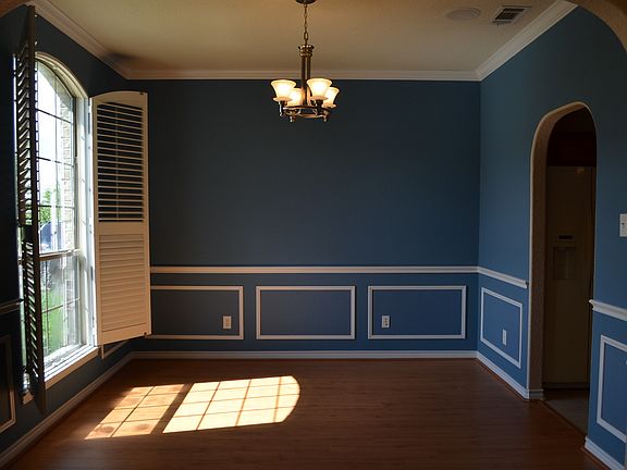 Wood burning fireplaceWalnut wood flooringExtended covered patioCustom planting bedsFormal dining roomTwo master suitesCustom chair rail