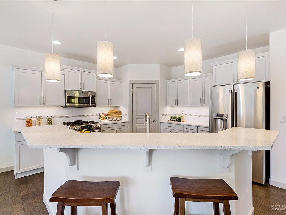 Hayden Homes-providing the best value for new construction in NW Bend - close to parks, hiking trails & the Deschutes River. Main level master bedroom, open concept living & additional bedroom. Huge luxurious walk out finished basement with living space and two additional large bedrooms. Stunning finishes, hardwood flooring, slab Quartz counters, SS Cafe appliances, walk in pantry, tile flooring in baths/utility, large elevated back deck, beautiful ext. with full lap siding and masonry. Pics of similar home