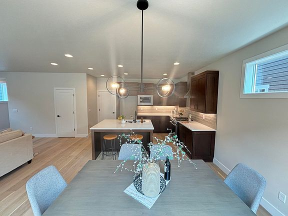 Stone Bridge Homes presents a beautifully crafted home in the Grand Meadow subdivision in NW Bend. It is designed with an open floor plan that makes entertaining effortless. The spacious kitchen flows seamlessly into the great room, and the covered back patio, equipped with a gas hookup for barbecues, extends the living space outdoors. Hardwood flooring, quartz countertops, and stainless appliances offer a sleek and functional space for cooking and entertaining. The primary suite features a walk-in closet, a luxurious tile shower, and dual vanities. Two spacious bedrooms provide ample space for family or guests. A versatile and expansive bonus room, ideal for a home office, playroom, or media center. Fully fenced front and back yard landscaping, creating a perfect outdoor activity and relaxation setting. Earth Advantage certified, 2-10 Home Buyer's warranty. This home combines thoughtful design with high-quality finishes, making it an ideal choice for those seeking comfort and style.