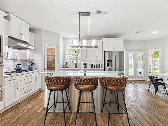 This classic 2-story home located on a cul-de-sac street is in a picturesque community with sought after schools. Many features have been upgraded including all the windows and the front door. Three major entertaining areas are available within this floorplan. The chef's Kitchen boasts an island, soft-closing shaker-style cabinetry with contemporary hardware, Thermador stainless steel appliances, a pot filler and a walk-in Pantry with stylish amenities. Custom wood shutters and wood-look tile flooring extend throughout the first floor. The Family Room has a gas fireplace with floor-to-ceiling stacked stone surround. The second floor has a gameroom, 4 bedrooms and 4 full bathrooms. Don’t miss the full bathroom between the two secondary bedrooms. Note the huge Primary Suite with raised ceilings and a walk-in shower and organized two person access walk-in closet. Nice sized backyard with a covered patio with room for a pool. It’s move-in ready and waiting for you to enjoy.