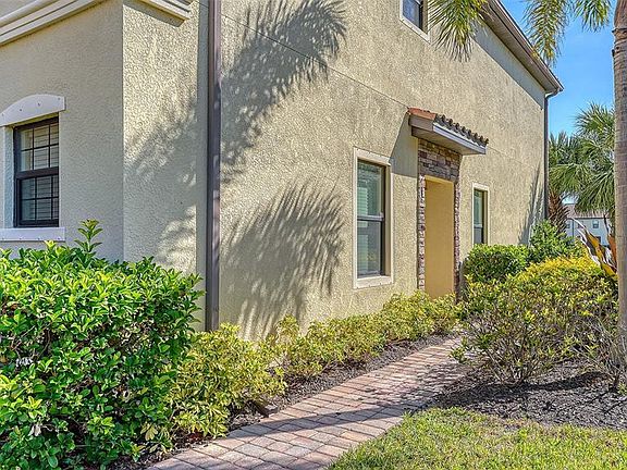 Gorgeous 3 bedroom 2 and a half bath townhome is located in Gran Paradiso within the sought after Wellen Park Community. This "Ava" end unit townhome offers chic modern furnishings and features a lovely leaded glass front door allowing natural light into the kitchen and dining area. The Kitchen is well stocked and features stainless steel appliances with a breakfast bar opening up to the dining/living room. A half bath located by the dining room is a perfect powder room on lower level. Enjoy the screened in lanai off the living room with a lovely view of the lake. This floorplan features well thought out living space and is able to accommodate a large family. Three spacious bedrooms are located on the second floor. The large master bedroom has walk in closets, ensuite bath with double sinks and walk in shower. Two additional bedrooms share a large bathroom with a tub/shower combo. Washer and dryer are conveniently located upstairs. The screened in lanai is the ideal spot for entertaining guests, enjoying coffee in the morning, meals in the evening and afternoon naps. A one-car garage keeps the car, beach toys and favorite tools safe and dry year-round. Come enjoy resort style living within the premier gated community of Gran Paradiso. Visit the Tuscan-inspired Clubhouse with state-of-the-art gym, billiards room, sauna, community pool & spa with poolside cabanas, tennis courts, card rooms, library, Activities director on site and so much more! Close to area beaches, Atlanta Braves Stadium, boutiques, walking trails and restaurants in downtown Wellen Park, Venice and Punta Gorda. *Once approved- *HOA requires 15 days' notice with fully executed lease no later than 15 business days prior to move-in and requires board approval*
