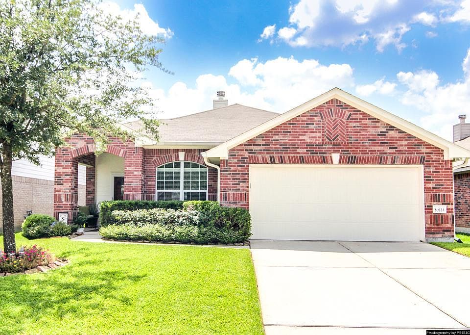 Open floorplan with soaring ceilings. Master suite with separate shower/soaking tub and double sinks. Split plan with 2 large secondary bedrooms and an extra space with many possibilities! Large living area with gaslog fireplace opens up to upgraded kitchen with 12x12 tile and 42'' cabinets with oversized dining area. Washer/Dryer and Refrigerator INCLUDED! Close to new Exxon Campus zoned to Klein ISD! This one will not last!