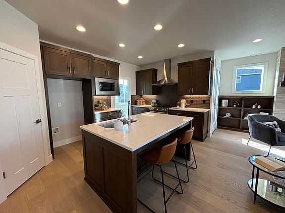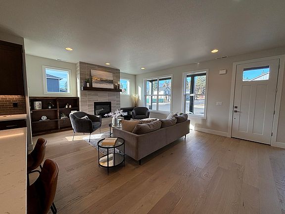 This new home in a quiet neighborhood in NW Bend is the perfect fit. It features quartz counters, an open floor plan, and stainless appliances. The kitchen is designed for entertainment, complemented by a covered patio. Upstairs, you'll find a spacious rec room and two bedrooms with walk-in closets. The primary bedroom includes a large walk-in closet and a tile shower. The garage has extra room for a shop. Additional amenities include air conditioning, fencing, front and back yard landscaping, and Earth Advantage certification.