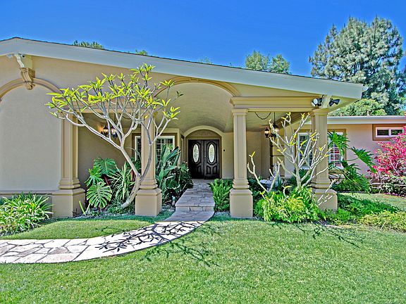 Call Patti Mardell (818) 262-3787 or Parker Timm (818) 879-3625 OPEN HOUSE SATURDAY 5/20 1:00-5:00PM SUNDAY 5/21 1:00PM - 5:00PM A unique opportunity to acquire an exquisite property on prestigious Wells Drive South of the Boulevard in Woodland Hills. This private gated home leads you up a private driveway. Renovated in 2015. This open floor plan home has new Milgard Tuscany dual pane windows with custom high quality shutters. Custom bar and entertainment center done with hand crafted solid wood. Hardwood flooring. Marble fireplaces in the living room and family room. Home flows out onto an enormous back yard, that includes a custom designed barbecue area, new heated and salt water pool. Grounds include a huge grassy area for kids play ground. Long dog run area on the side of the house. Completely secluded and sourounded by mature trees and greenery. A true Hawaiian Oasis. New double water heaters that supply the house hot water in two zones. Maids quarters is next to the kitchen with double doors. He/she has own ensuite full redone bathroom, and bedroom opens to barbecue area. Huge kitchen with granite counter top, one peace granite center island, custom built subzero, and custom lighting. Master suite opens onto the peaceful backyard. The master bathroom designed for natural light flow with large custom walk-in closet. State of the art shower and jacuzzi. Two other bedrooms with property view share bathrooms in form of "Jack and Jill". The fifth room has been converted into a study with custom designed hardwood handcrafted wood. Privacy from ALL windows that look onto property landscaping. Hallway leading to bedrooms has ample cabinetry for towels and sheets. Security cameras throughout the house with 24-hour recording. ADT security panels.