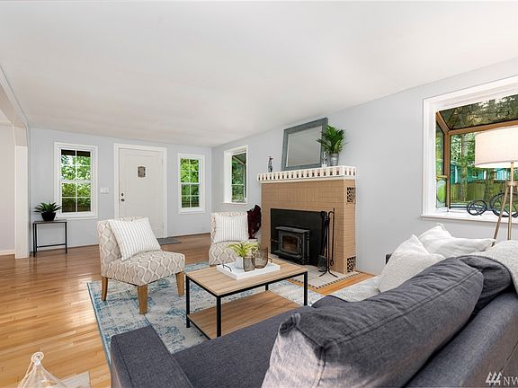 Remodeled with great bones and turn-key infrastructure for the same price as a condo! No homes on the market at this price! Private, treed property with gorgeous cedars and firs cared for regularly by arborist. Recent updates include new furnace, 4 y/o roof, gutters, attic insulation, vinyl windows, tankless H2O htr, 200 amp panel w/sub panel for generator. Cosmetic renovation int/ext paint, flooring, kitchen, and bathrooms renovated. Easy parking, turn-around, and storage in outbuildings.