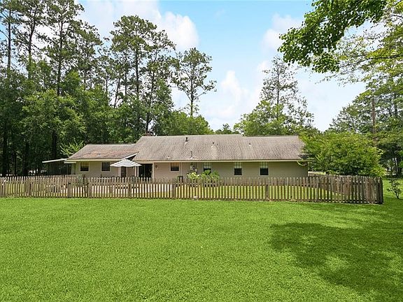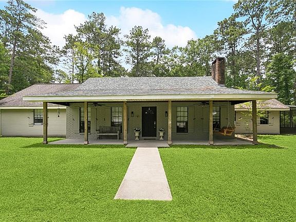 With a bit of vision and updating, this property can become your dream retreat! Discover the charm of Southern living on this beautiful 1.72 acre (250' x 300') property with a pond, workshop and separate driveway, located just 2.4 miles from downtown Covington. This four bedroom, 2.5 bath home offers incredible potential with spacious living areas, three inviting porches, and gorgeous outdoor spaces - for embracing the lifestyle of South Louisiana. Step inside this Acadian style home featuring: an entry foyer that opens to the inviting living room with brick fireplace & hearth; the kitchen offers great cabinet storage, granite counter space, pantry, a stainless Kenmore Elite gas six burner stove and oven, stainless dishwasher and refrigerator; breakfast area with access to the large patio and picket fenced area overlooking the property and pond; a breakfast bar with storage cabinets below opens to the awesome 20' x 20' great room with wood walls, corner built-in shelves & cabinets, the double atrium doors open to the lovely 14' x 13' screen enclosed patio to enjoy year round; a half bath and laundry room are conveniently located off the great room area. To the left of the entry foyer is an optional formal dining/office/ or 4th bedroom with walk-in closet, there is access to another large storage closet and hallway to the remaining bedrooms and baths. The primary bedroom features two closets, a vanity/dressing area, and tiled bath. This home is just waiting for you to make it your own. Great entertaining areas inside and outside. Corner lot with two driveways is ideal for those with extra vehicles, boat or RV.