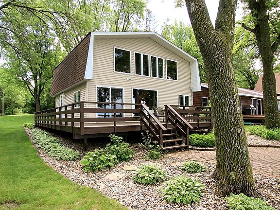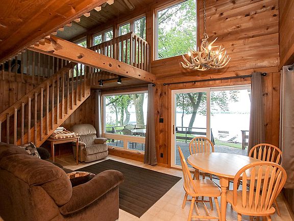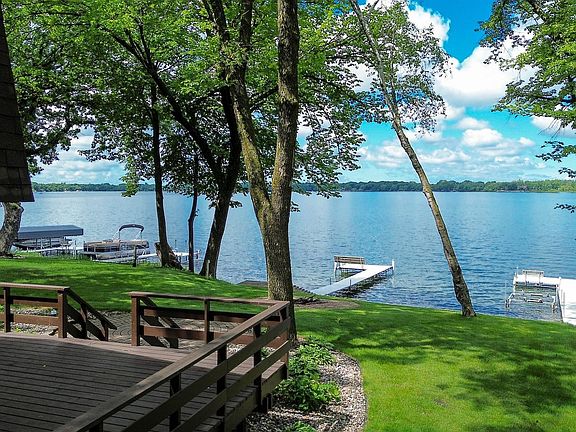 Seasonal cabin located on Lake Minnie-Belle features 4 bedrooms, 2 baths, open loft area, electric fireplace, two mini splits & updated kitchen. Steel siding & Vinyl windows. Watch the sunsets from the paver patio & wrap around deck. Storage shed and dock included. Nicely landscaped lot with gentle slope to lake and mature trees. Septic system is compliant. Option to purchase outlot for $25,000.