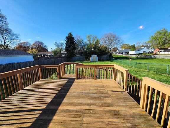 Large fenced yard, deck with handicap accessible ramp, shed for storage.