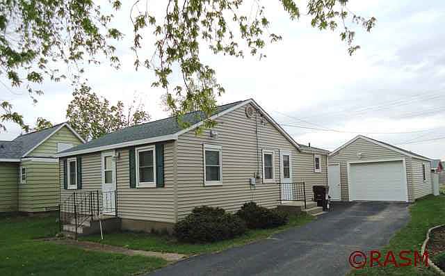 Great value on this 2 bedroom Bungalow with single detached garage with EGDO. House and garage have new roofs in 2011 and new vinyl siding. Kitchen has been updated with newer cupboards and stainless steel sink. Refrigerator and Range stay. Hard-surfaced asphalt driveway, concrete patio on rear of house. Lot goes all the way back to alley. New storage shed with concrete floor stays. Newer vinyl windows throughout the house. Full bath has built-in storage cabinets. Handicap accessible.