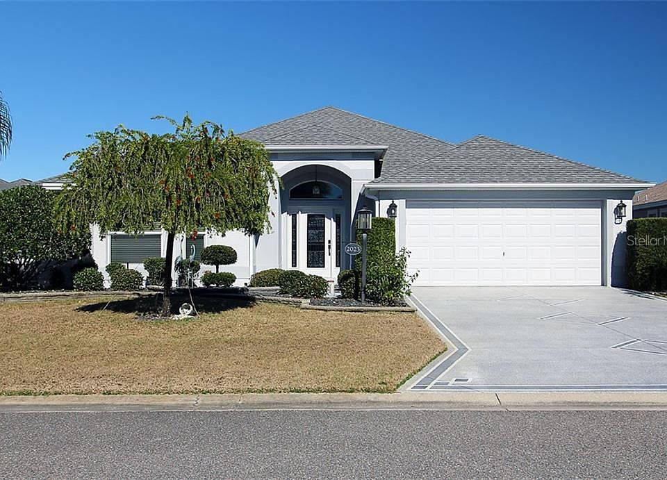 Designer Home Model Lily located between Brownwood and Sumter Landing in the neighborhood of Buttonwood, close to several executive golf courses and recreation centers. The home has many enhanced features like custom closets in every bedroom, dual sinks and roman shower in master bedroom, windows have 3M solar film, enclosed Lanai and the garage has a workbench with extra cabinets, kitchen has beautiful granite countertops, double wall ovens, stainless steel appliances, eat-in area off the kitchen and much much more. Call for your private showing today!