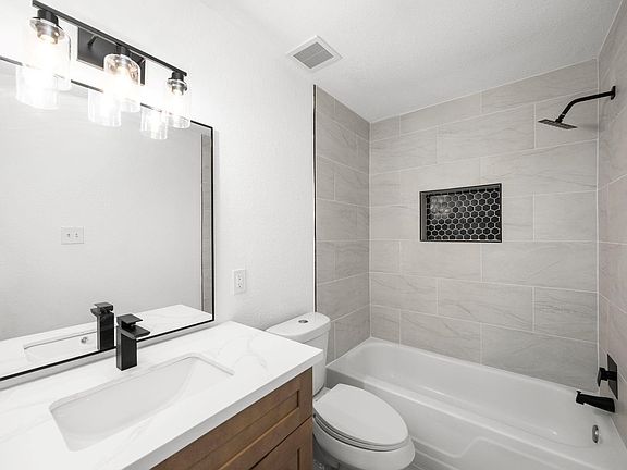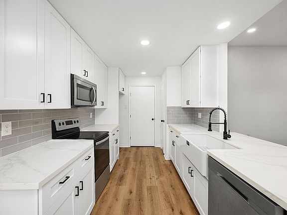 Beautifully renovated 1 story home features 3 bedrooms, 2 full baths, and a spacious 2-car garage, all zoned to highly-rated Katy ISD. Open floor plan with kitchen overlooking the living room. Living room features cathedral ceilings, loads of natural light and corner fireplace! In the kitchen, you'll find brand new white shaker cabinets, stunning quartz countertops, a farmhouse sink, and brand-new SS appliances. Enjoy the brand new vinyl plank flooring NO CARPET, upgraded light fixtures, ceiling fans, and matching door hardware. The oversized primary bedroom is perfect for a nursery or a home office. Primary bathroom features double sinks a large walk in shower, new vanity cabinets with quartz countertops. LOCATION, LOCATION, close to I-10, with restaurants, grocery shopping, and retail stores galore. Don't miss out on this stunning opportunity!