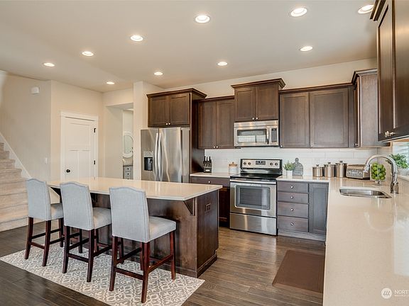 Beautiful craftsman 2 story home with primary bedroom located on the main floor! The entry greats you with tall ceilings & an oversized front door. The 4th bedroom/office is located just off the entry, (currently being used as an office/there is no closet). This popular open floor plan has a large chef's kitchen with quartz counters & a huge island w/bar seating. The great room is gorgeous with a stone fireplace & large windows pouring in natural light. Upstairs are 2 good sized bedrooms, a full bath, & a spacious bonus room. This home has been meticulously cared for & feels like new! Awesome location close to shopping, golf, and schools. Covered patio for outdoor entertainment. Possible extra parking along side the home approx. 12' wide.