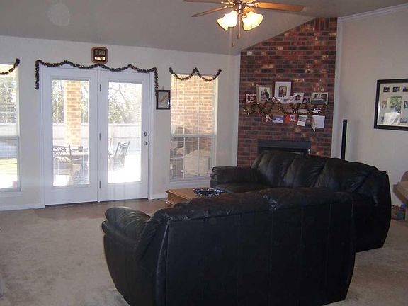 Located in Knights Ridge, this cozy brick and stone home, built in 2005, offers 3 bedrooms and 2 full baths. Modern floor plan features a tiled entry which opens into the spacious living area offering large windows, ceiling fan, floor-to-ceiling brick fireplace, and access to the eat-in dining and kitchen. The kitchen offers a wrap-around bar area, tile back splash, island work center, and recessed lighting. Study, secluded by French doors, is located off the living area, providing an ideal space for a home office or play room. Carpeted master suite includes an en suite bath with double marble vanity, jetted tub, separate shower, and walk-in closet. Minor bedrooms are serviced by a centrally located second full bath. Relax in the back yard, which features a covered patio, privacy fence, and no neighbors directly behind. Other desirable amenities include large windows for natural light throughout, separate laundry room, sprinkler system, and remote entry two-car garage. Call today to schedule an appointment to view this lovely home! No smoking Pets OK (anything over 25lbs is subject to owner approval) $40 non-refundable application fee for anyone over the age of 18 Apply at tricitypm.com under the tenants tab