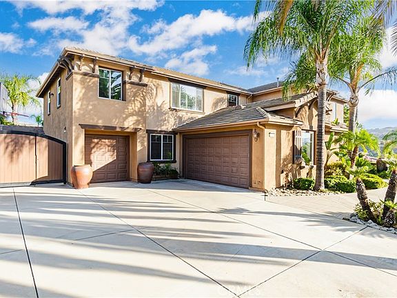 Honey, STOP the Car! This exceptional turn-key corner lot with Panoramic City Views is the one you've been looking for! Experience unparalleled luxury in this resort style estate located in the coveted South Hills of Redlands. Spanning 4,105 square feet, this impressive 5-bedroom, 4.5-bathroom home offers breathtaking 360-degree city views and is set on over half an acre with RV parking, blending privacy with modern elegance. Upon entering, you are greeted by high vaulted ceilings and a sophisticated layout with a full downstairs bedroom and attached bathroom for guests or a side mother-in-law quarters. The dual staircase ascends to the second level, where you'll find an oak-paneled hallway leading to the Master Suite, complete with a spacious jacuzzi bath, large walk-in closet, and private deck overlooking your own outdoor oasis. Recent upgrades include brand-new carpeting and pad throughout enhancing the home's comfort and appeal.