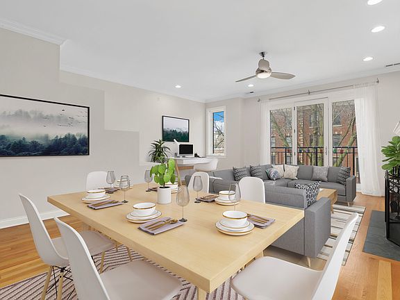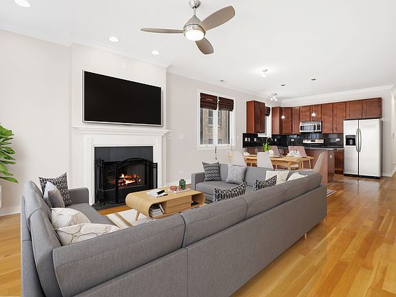 Welcome home! This extra large 2 bedroom 2 bathroom with garage parking included in this prime Logan Square location is not to be missed! The self managed, boutique walk-up, middle floor unit has everything you have been waiting for, situated just minutes away from all the great restaurants and bars on Armitage, great parks like Palmer Square, and easy access to public transportation including the California Blue Line stop. Enter into the secured front entryway where you will make your way up one flight of stairs to the second floor unit. As you enter you're greeted with hardwood floors throughout, accented crown molding, massive open living concept (larger than your average second floor simplex) with space for a dedicated dining area, WFH office nook, and large living space complete with sun-drenched Western exposure, and gas start, wood burning fireplace. The large chef kitchen is an entertainers dream with a huge island with granite countertops, stainless steel appliances, espresso cabinets, and black tiled backsplash. There is plenty of storage with a pantry/utility closet under the stairs, spacious second bedroom with a secondary bathroom with standup shower, and complete with stackable in-unit laundry. The primary suite includes a walk in closet space, ensuite bathroom highlighted with a double vanity, jetted soaking tub, separate shower, and easy access to your private large rear deck which is accessible from the hallway as well. This beautifully maintained unit is complete with a shared backyard green space, additional storage and an end garage spot included in the price. This low assessment building has been well kept and has no rental cap.