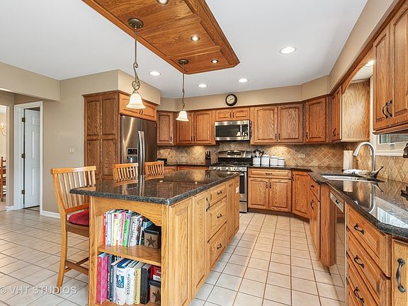 This BEAUTIFUL, BRICK Georgian is one of the neighborhood's royalty. Offering great room sizes and a chef's kitchen with large center island with seating, GRANITE COUNTERS, high end STAINLESS STEEL appliances all open to family room with floor to ceiling brick fireplace set over brick hearth and built-ins flanking each side. Second floor offers master suite with large walk-in closet, ensuite with double sink vanity, whirlpool tub and separate shower. The finished basement comes with a COMPLETE HOME GYM including most equipment. Rec room is open to bar, big enough for all your entertaining needs. The private fenced backyard has dog run, BRICK PAVER PATIO, FIREPIT area and the HOT TUB stays too. NEWER roof, windows, appliances, fresh paint and new carpet on main level makes this home ready to move in. so much more and all meticulously maintained. Located in a quiet cul-de-sac, close to the park that offers tennis, basketball, playground, skate park and splash pad. Minutes from I90, Metra, Randall Rd corridor, dog park and downtown West Dundee with river walk, plenty of shops and restaurants.