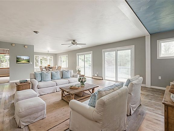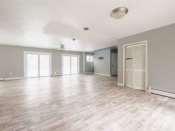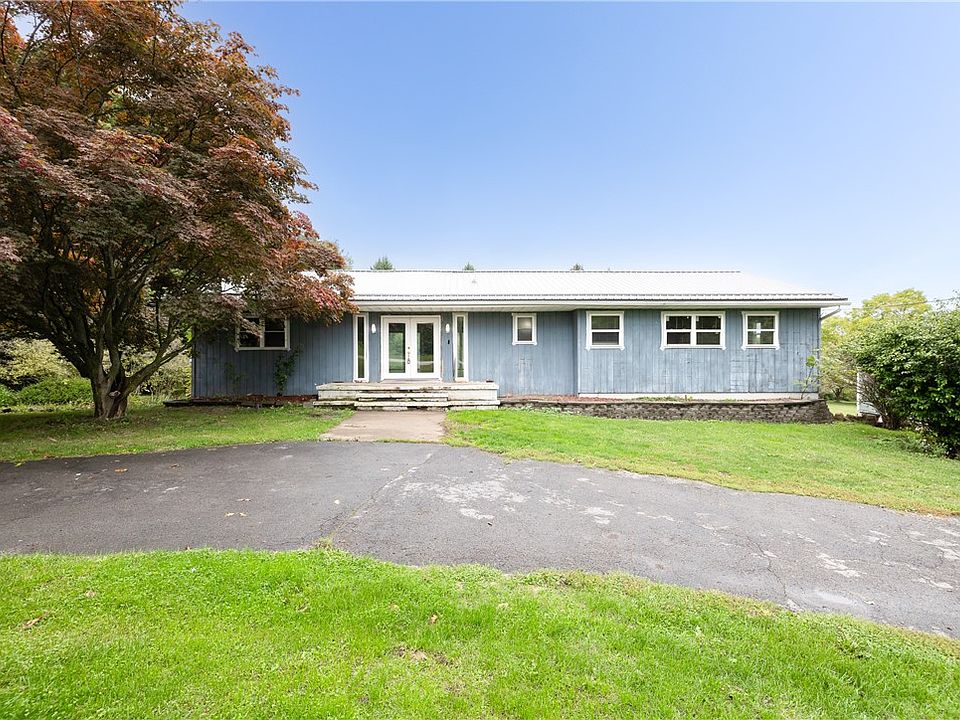 A perfectly situated 4-bedroom, 2.5-bathroom ranch on 2.25 acres located on a quiet country road. The main level features a large open foyer that leads into a spacious living and dining area, providing plenty of room for everyday use or gatherings. Double sliding glass doors in living room, with another master bedroom sliding glass door, overlook the beautiful backyard that includes apple trees, blueberry bushes, and grape vines. The yard provides plenty of space for gardening, outdoor projects, or simply enjoying the quiet surroundings. This home has a partially finished walk-out basement with another sliding glass door that leads to the backyard, as well as an additional room that could be used as a small office or studio. A large 2.5-car garage offers space for vehicles, storage, and workshop use. Several updates have been completed, including all brand new windows, a metal roof, a new hot water heater (2022), and a new boiler (2024). In addition, the sale includes enough luxury vinyl to finish all of the bedrooms, as well as enough hunter green siding to side the entire home; this gives the next owner the opportunity to continue the total overhaul of improvements that have already been started. Delayed negotiations until 10/6/25 at 12pm. Some photos are virtually stages.