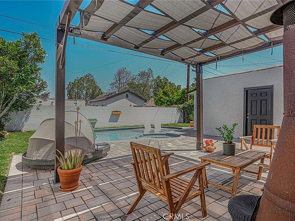 Embrace the quintessential Southern California lifestyle with this enduring Spanish bungalow in Manchester Square, redesigned for those who seek an everyday escape to paradise. Your private retreat boasts a stylishly revamped pool with a Baja shelf for lounging under the sun, a soothing spa for relaxing dips, and an exquisitely upgraded backyard—ideal for lively barbecue gatherings and intimate alfresco dining beneath the pergola. Step inside this recently renovated haven and be swept away by the seamless flow of the stunning laminate wood plank flooring taking you from the inviting open-concept living room, dining area, and kitchen, out to the den and into your backyard sanctuary. The expansive kitchen shines with generous quartz countertops, a communal cooking space, a convenient breakfast bar, garden window, and the crowning jewel—a newly created walk-in pantry.