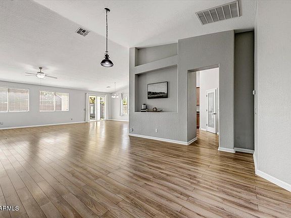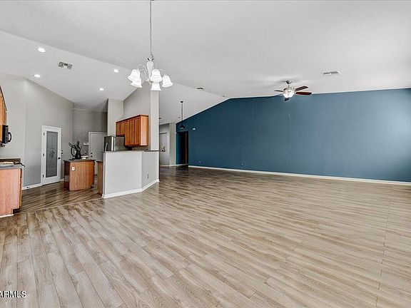 Delightful Single-Story Home with Open Floor Plan in Laveen! Discover the perfect blend of comfort and style in this adorable 4-bedroom, 2-bathroom home situated in the serene neighborhood of Laveen. This single-story gem stands out with its spacious open floor plan, dramatic vaulted ceilings and lots of natural light creating an inviting and airy ambiance throughout. Nestled next to a community park, this home offers the ideal balance of community and privacy. The updated laminate flooring seamlessly connects each room, offering both durability and ease of maintenance. Each of the large bedrooms provides ample space for rest and relaxation, while the two bathrooms feature dual sinks.The 3rd car garage is also connected with the main cooling and heating system for additional living space