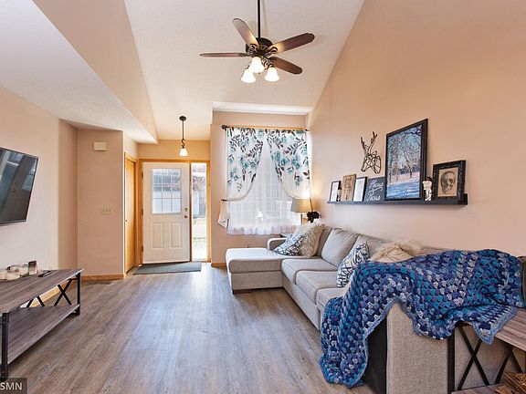Beautiful 2-bedroom, 2-bathroom home with vaulted ceilings and loft. Quick Close possible and move in ready. Features brand new laminate flooring downstairs and new carpet upstairs. Convenient upper-level laundry and 7x7 master bedroom walk-in closet. Homeowners Association replaced Roof and Siding in 2018 and replaced the garage door in 2019. Dog friendly community with no breed or weight restrictions and a 10-minute drive to Otter Lake Dog Park. 20-minute drive to St. Paul via 35e and only 2 lights to access freeway. Walking distance to Rice Creek Chain of Lakes County Park and public transportation. Centrally located for easy shopping, entertainment, and restaurants. Centennial Public School District is a highly rated, public school district located in Circle Pines, MN. It has 6,740 students in grades PK, K-12 with a student-teacher ratio of 20 to 1. According to state test scores, 73% of students are at least proficient in math and 68% in reading. Home warranty possible.
