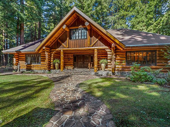 Tucked away within the esteemed confines of a choice private neighborhood, this inviting custom built log home epitomizes rustic coastal luxury. Crafted from large dimension pine trees surrounding Mt. St. Helens, this spacious home personifies the commanding spirit of a coastal chalet. The residence sprawls across 4100 sq ft, set amongst nearly 5 1/2 acres with 2 guest rooms and a large primary suite.Designed to harmonize with its picturesque surroundings, the home's expansive great room showcases its strategically positioned large windows to frame captivating sylvan views and filtered sunlight through a meticulously manicured forest backdrop. An impressively bold, floor to ceiling, rock fireplace adds warmth and contrast to the natural textures of the flanked log walls and warm radiant tile flooring. The oversized living area provides the perfect entertaining atmosphere to flow from the cozy interior to large surrounding decks, outdoor fireplace, BBQ, and prep bar. The upper level showcases angular log beams artistically cascade through the primary suite for luxury and grandeur. Large bathrooms, a soaking tub, and walk-in closets enrich the living experience on both levels of this home. Perfectly lit with thoughtfully placed lighting to accentuate the home's craftsmanship, each room is paired with a whole house sound and media system making it undoubtedly a home for entertaining.From enticing large foyers, wet bar, formal dining room, and large kitchen with Viking appliances, the home has been host to banquet dinners, parties, and gatherings where all feel comfortable and welcomed by the home's unparalleled, natural sanctuary-like atmosphere.The residence offers ample storage and parking. Built with a 2300 sq ft warehouse for storage and RV parking, along with a garden shed, generator, and water storage, for the ease of rural coastal living. Here you will discover the ultimate luxury amongst the redwoods. Soak up sunlight that has been channeled through your personal forest, air that is dusted with the salt of the Pacific ocean, and enchanting visits by wildlife to help keep life's fulfillments in perspective.