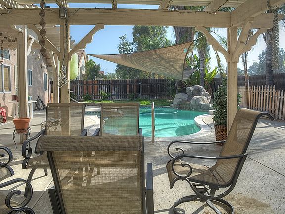 Highly Desired Orangecrest Single Story Pool Home-Large Corner lot with a built in pool and spa, newly landscaped water-wise front yard. Formal living and dining room with bamboo flooring. High Ceilings allowing a lot of natural light. Kitchen has Stainless Steel appliances and Center Island. Open concept Family room, Dining area and Kitchen. Large Master Suite with walk-in closet and remodeled tile tub shower. Large covered patio for entertaining. Two car attached garage with additional storage shed in side yard. Room for RV Parking expansion. 5.415 KW Photovoltaic Solar Electricity generating system to keep your bills and carbon footprint low. Within walking distance to some of the best schools in Riverside, Public Library, Community Center, and Sports fields. Low taxes and no HOAs.