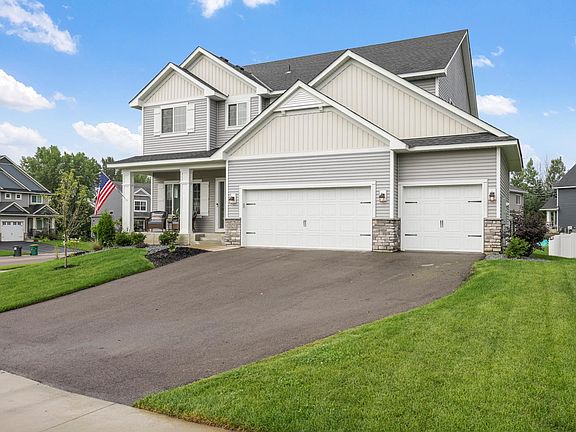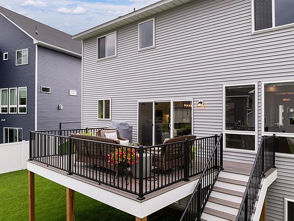Why wait for new construction. This popular Madison floor plan built by One Ten Ten Homes is now available because of a relocation. This home has it all. Shows like new construction with all the current colors and surfaces. Located on a beautiful private cul-de-sac with no through traffic. Light and bright great room with custom built-ins and over-sized windows. Large quartz kitchen island with breakfast bar and in kitchen dining. Large home office with French doors. The main level half bath is tucked in with a large mud room and storage closet. Stunning Primary suite with dual sinks separate tub and shower. 3 additional upper-level bedrooms served by a full bath and cozy loft for late night movies. The look out lower level is fully finished with a large recreation room, large 5th bedroom and 3/4 bathroom. The main level walks out to a brand new $20K no maintenance deck with stairs down to a large flat backyard. Lakeville South High School.