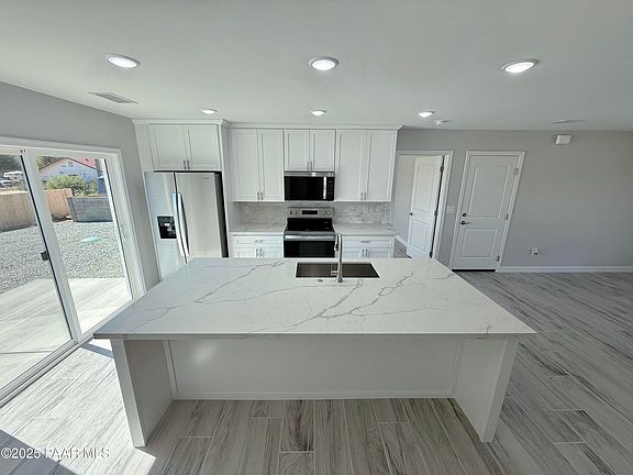 Welcome to this brand-new MASTERPIECE, a true display of craftsmanship and comfort! Thoughtfully built on an engineered slab foundation with 2x6 exterior stud construction, this home radiates superior QUALITY and lasting DURABILITY. Every exterior wall, including the garage, is fully insulated, offering year-round comfort and energy EFFICIENCY. Step inside the kitchen that stuns with its TIMELESS yet fresh designs of crisp white cabinetry adorned with elegant crown molding, breathtaking Calacatta quartz countertops, and a soft limestone backsplash that adds warmth and depth. This beauty perfectly balances MODERN sophistication and charm with all brand-new stainless steel appliances provided with a RARE BONUS--the refrigerator! The lovely home's interior shines with refined painted walls that tie each room together effortlessly, while the epoxy-coated garage floor brings a defined touch of DIVERSITY and luxury. Surrounded by panoramic Arizona mountain views that create never ending relaxation and inspiration. Don't miss your chance to own this EXCEPTIONAL new build, a home where every detail was crafted to impress and every space invites you to stay. COME and see it today because this opportunity won't last long!