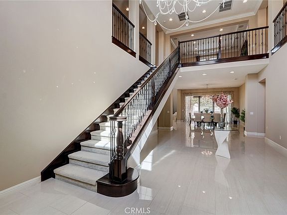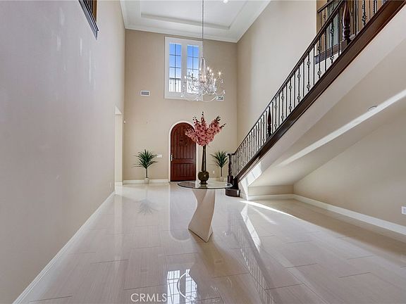 Rare Model located in the most prestige guard gated community of Porter Ranch (WestCliffe).  This two story monument to beauty offering 5 bedrooms, 5.5 bathrooms, and a seemingly interminable 4,593-sqft of living space. Golden sunlight streams through artfully positioned windows so that the natural luminance falls upon the gloss of the exotic tile flooring to brilliant effect. Soaring ceilings tastefully punctuated with recessed lighting contribute to the airy, liberating essence of the colossal floor plan. The intuitive flow of the floor plan introduces a wealth of storage options, organized by custom crafted built-ins. A chef's kitchen replete with masterfully crafted wooden cabinetry, an array of built-in stainless-steel appliances, and chic granite countertops serves as the heart of the property, opening onto a family room suited for entertaining. Nearby, the formal dining room promises unforgettable dinner soirées. Convenience is further emphasized by the ensuite design of each of the bedrooms made even more comfortable by soft carpeting. The bedrooms continue the trend of ample storage space with their generously sized closets. There are 2 primary suites, one on each floor of the home. The first floor has an enormous primary bedroom is further distinguished by its separate seating area and luxury bathroom complete with a double sink vanity, soothing soaking tub, and heavenly walk-in shower. Laundry is kept to its utmost convenience with a dedicated laundry room offering the extra advantage of a sink and cabinet space. This opulent residence also includes a dual AC unit and tankless water heater. Tranquility reaches new heights in the private backyard with its covered patio sanctuary, built-in barbecue grill with accommodating countertop, and a gently whispering waterfall reinforcing the serenity of this one-of-a-kind home in one of a kind community.
