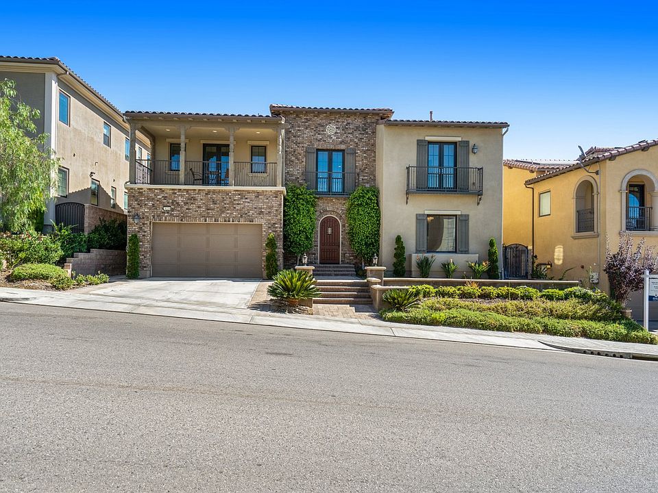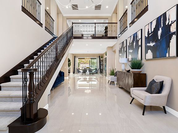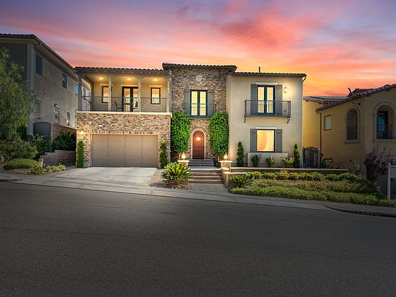 In the heart of the much-sought-after Westcliff community in Porter Ranch proudly stands this two story monument to beauty offering 5 bedrooms, 5.5 bathrooms, and a seemingly interminable 4,593-sqft of living space. Golden sunlight streams through artfully positioned windows so that the natural luminance falls upon the gloss of the exotic tile flooring to brilliant effect. Soaring ceilings tastefully punctuated with recessed lighting contribute to the airy, liberating essence of the colossal floor plan. The intuitive flow of the floorplan introduces a wealth of storage options, organized by custom crafted built-ins. A chef's kitchen replete with masterfully crafted wooden cabinetry, an array of built-in stainless-steel appliances, and chic granite countertops serves as the heart of the property, opening onto a family room suited for entertaining. Nearby, the formal dining room promises unforgettable dinner soirées. Convenience is further emphasized by the ensuite design of each of the bedrooms made even more comfortable by soft carpeting. The bedrooms continue the trend of ample storage space with their generously sized closets. There are 2 primary suites, one on each floor of the home. The first floor has an enormous primary bedroom is further distinguished by its separate seating area and luxury bathroom complete with a double sink vanity, soothing soaking tub, and heavenly walk-in shower. Laundry is kept to its utmost convenience with a dedicated laundry room offering the extra advantage of a sink and cabinet space. This opulent residence also includes a dual AC unit and tankless water heater. Tranquility reaches new heights in the private backyard with its covered patio sanctuary, built-in barbecue grill with accommodating countertop, and a gently whispering waterfall reinforcing the serenity of this one-of-a-kind home.