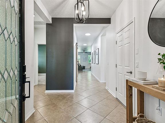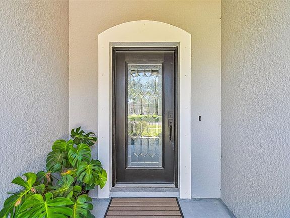 Welcome to this beautifully maintained 4-bedroom, 2-bath home with serene CONSERVATION VIEWS in the 24-hour GATED community of LIVE OAK Preserve in New Tampa. Step through the leaded-glass front door into a bright, open floor plan featuring 18” diagonal tile in the main living areas and custom craftsman touches throughout. The kitchen was enhanced with refinished 42” solid-wood cabinets with crown molding, under-cabinet lighting, granite countertops, a large center island, wine rack, pull-out trash and recycling bins, a custom pantry and a built-in microwave shelf beneath a designer range hood. The SPLIT FLOOR PLAN offers spacious secondary bedrooms, two with carpet and one with cherry Pergo flooring. The owner’s suite features a LARGE WALK-IN CLOSET, garden tub, separate shower, dual granite vanities, resurfaced cabinetry, and a custom built-in wardrobe. Additional interior details include a barn door with soft-close feature, custom closet shelving, a built-in drop station with shoe cubbies and backpack hooks, gym flooring in one of the bedrooms, and garage storage racks with a workbench. Step outside to enjoy PEACEFUL WOODED CONSERVATION views, vinyl fencing on both sides, a covered lanai, outdoor lighting, and lush landscaping, an ideal setting for your FUTURE BACKYARD OASIS. Exterior improvements include FRESH PAINT and custom, pre-cut hurricane plywood panels. Other notable features include four exterior security cameras, SURROUND SOUND, Alexa thermostat, remote-controlled fans, and a RADIANT BARRIER ATTIC for improved energy efficiency. Live Oak Preserve residents enjoy RESORT-STYLE AMENITIES including a grand clubhouse, Olympic-size pool with water slide and splash zone, heated spa, fitness center, playground, tennis, basketball, and volleyball courts. Zoned for Turner/Bartels K-8 SCHOOLS – MINUTES FROM YUR DOORSTEP, and close to Wiregrass Mall, Tampa Palms Golf & Country Club, Flatwoods Wilderness Park, AdventHealth Wesley Chapel, and Moffitt Cancer Center. Conveniently located near I-75, I-275, and I-4 with easy access to Downtown Tampa, Tampa International Airport, and Orlando. Schedule your private showing today and experience the best of New Tampa living!