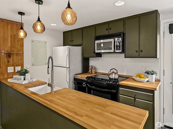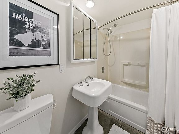 Beautifully finished 1-bedroom, 1-bath accessory dwelling unit located on the lower level of a quiet single-family home. This thoughtfully designed space offers modern comfort and efficient living, perfect for a professional or couple looking for a private, well-located Seattle home. The open-concept living room and kitchen feature butcher-block countertops, sleek cabinetry, pendant lighting, and full-size stainless-steel appliances. Polished concrete floors and natural wood accents create a clean, contemporary feel. French doors off the kitchen bring in natural light and open to a lush garden view. The spacious bedroom includes a large window, built-in storage, and walk-in closet, while the full bathroom has a tub/shower combo and pedestal sink. In-unit washer/dryer located in the mechanical/laundry room. No smoking. Lease term 12 months (flexible). Street parking available. Tenant shall pay a flat fee of $175 per month to cover internet, electricity, water, sewer, garbage, and recycling service. The flat fee is based on the size of the unit (523 sq ft) and average utility usage for one adult occupant. The Owner may adjust the fee at lease renewal based on actual costs or occupancy changes.