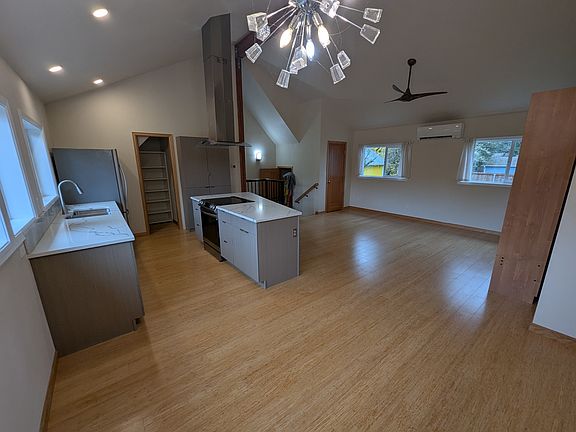 -Upscale finishes throughout: engineered wood floors, solid-surface countertops, vaulted ceilings, and upgraded appliances.
