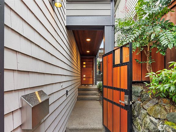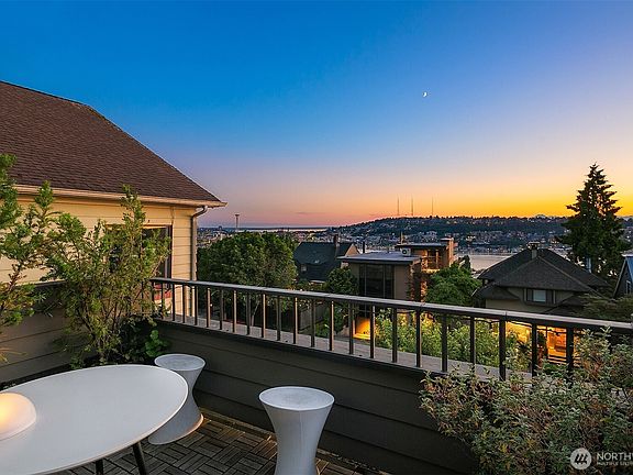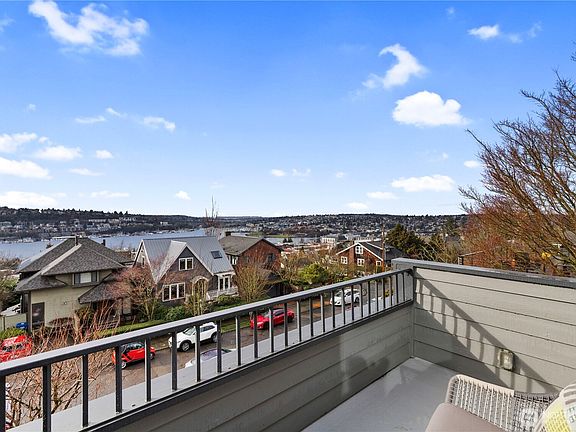 Stunning Views & Sophisticated Design! Enjoy breathtaking, unobstructed views from not one, but 2 decks. With a thoughtfully designed floor plan, this home offers 3 primary suites-one conveniently located on the lower level, perfect for guests + a half bath on main. The serene back patio is accessible from the lower bedroom or side entrance. New 200-amp panel w/surge protector, EV outlet & A/C added. One full-size vehicle garage w/overhead storage + driveway spaces, making parking a breeze. Every inch of this home has been meticulously updated w/high-end finishes & appliances, which all stay. You will love the custom designed, built-in pet station! Wine cooler + mirror above stays. Minutes to S Lk Union or Lt Rail.